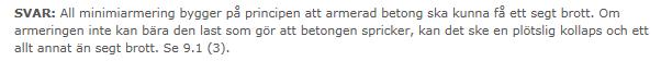 Svar: För att ta den sista frågan först: Det som gäller generellt för täckskikt står i SS-EN 1992 avsnitt 4 och Boverkets EKS 10.